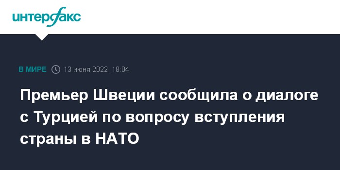 Москва. 13 июня. INTERFAX.RU - Власти Швеции при рассмотрении вопросов о возможном вступлении в НАТО принимают во внимание обеспокоенность Турции, касающуюся обеспечения безопасности, и продолжают работать с Анкарой, сообщила в понедельник премьер-министр страны Магдалена Андерссон.