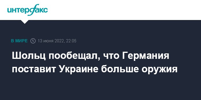 8 июня Шольц сообщил, что Германия не собирается отказываться от поставок Украине тяжелого вооружения и планирует новые поставки.