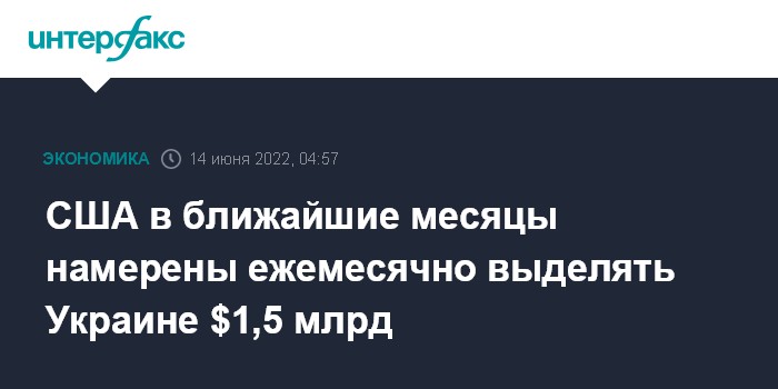 Москва. 14 июня. INTERFAX.RU - Власти Соединенных Штатов намерены направлять Украине около $1,5 млрд в месяц на поддержание работы правительства, заявил первый заместитель помощника госсекретаря США по делам Европы и Евразии Дерек Хоган.