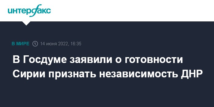 В Госдуме заявили о готовности Сирии признать независимость ДНР