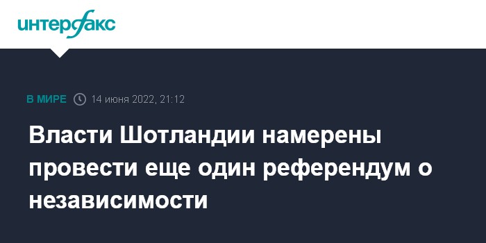 При этом премьер-министр Великобритании Борис Джонсон, выступая на с речью в память о Фолклендской войне, заявил во вторник, что "народ Шотландии принял решение всего несколько лет назад", и потому вопрос о независимости следует считать закрытым.