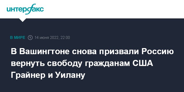 Москва. 14 июня. INTERFAX.RU - США продолжают призывать РФ освободить "неправомерно задержанных" американскую баскетболистку Бриттни Грайнер и гражданина США Пола Уилана, заявил представитель Госдепа Нед Прайс во вторник.