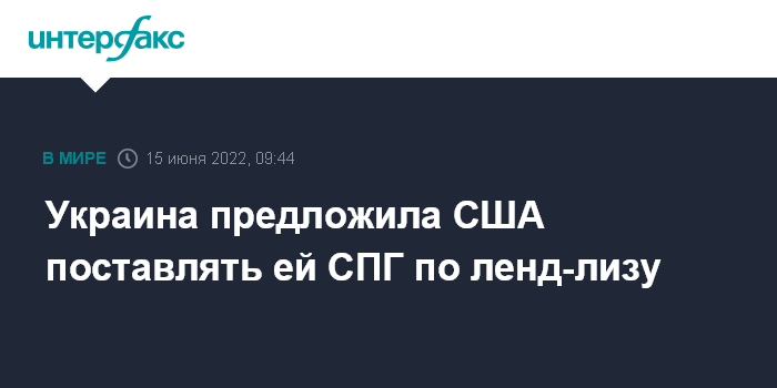 Москва. 15 июня. INTERFAX.RU - Украина рассматривает вариант соглашения с Вашингтоном о поставках американского сжиженного природного газа (СПГ) по ленд-лизу, сообщил американский журнал Foreign Policy.