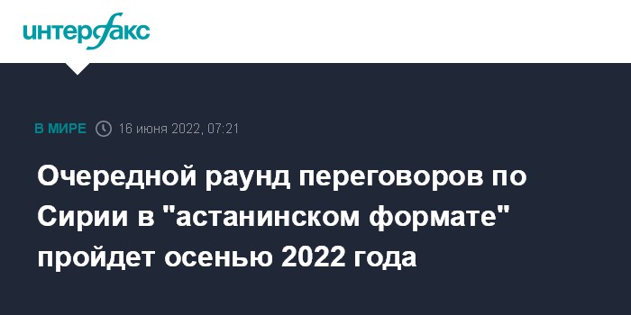 Очередной раунд переговоров по Сирии в "астанинском формате" пройдет осенью 2022 года