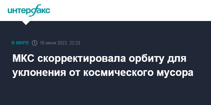 Москва. 16 июня. INTERFAX.RU - Российские специалисты провели коррекцию орбиты МКС для уклонения от космического мусора, сообщили в "Роскосмосме".