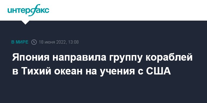Москва. 18 июня. INTERFAX.RU - Японское командование отправило в Тихий океан флотилию Морских сил самообороны Японии, которая посетит ряд стран, а также будет участвовать в нескольких международных учениях, сообщает "Киодо".