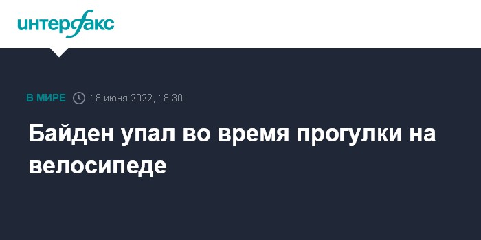 Москва. 18 июня. INTERFAX.RU - Президент США Джо Байден в субботу упал с велосипеда, когда катался на нем недалеко от своего дома на побережье штата Делавэр, сообщает Associated Press.