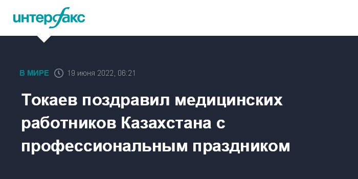 Москва. 19 июня. INTERFAX.RU - Президент Казахстана Касым-Жомарт Токаев в воскресенье поздравил работников сферы здравоохранения с профессиональным праздником.