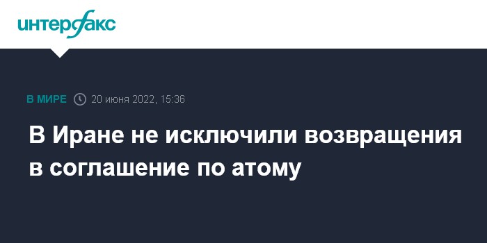 Москва. 20 июня. INTERFAX.RU - В Иране считают, что возобновление Совместного всеобъемлющего плана действий (СВПД) по иранскому атому все еще возможно, и предостерегают США от введения новых санкций, сообщает в понедельник иранское агентство "Тасним" со ссылкой на МИД страны.