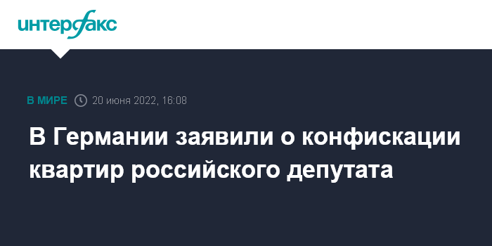 Москва. 20 июня. INTERFAX.RU - В Мюнхене в рамках борьбы против обхода санкций конфисковали три квартиры и банковский счет, которые, по утверждению властей, принадлежат российскому депутату и его жене, сообщило в понедельник агентство Associated Press со ссылкой на немецкую прокуратуру.