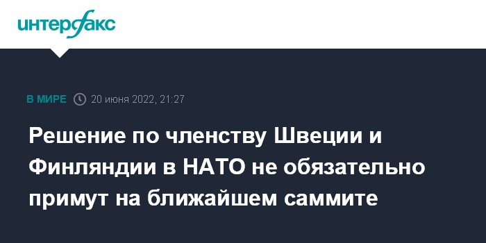Решение по членству Швеции и Финляндии в НАТО не обязательно примут на ближайшем саммите