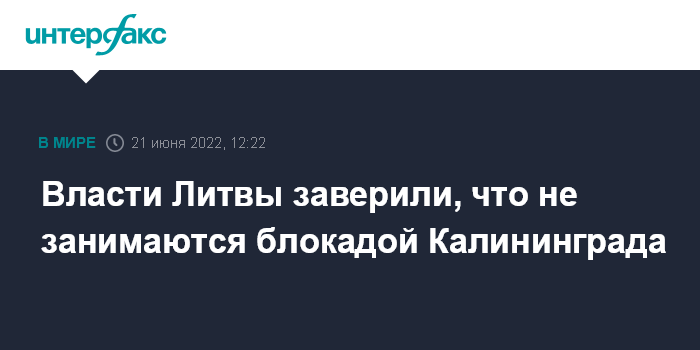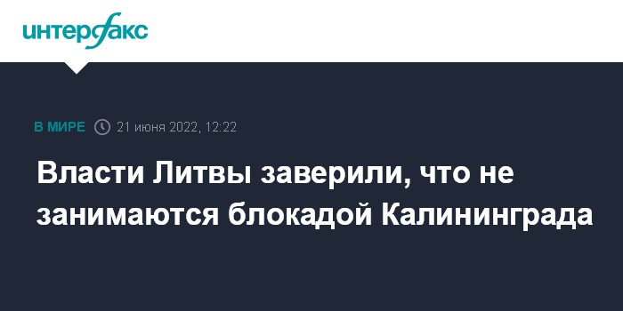 Накануне Москва заявила, что ограничения транзита грузов через Литву в Калининградскую область нарушают международные договоренности, и потребовала от Вильнюса отменить запрет на транзит некоторых товаров. Литва в ответ заявила, что не вводила односторонних ограничений, указав на то, что запрет предусмотрен санкциями ЕС.