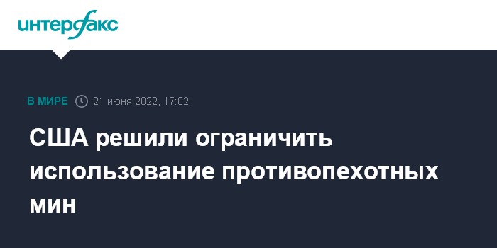 Москва. 21 июня. INTERFAX.RU - Вашингтон решил ограничить применение противопехотных мин в соответствии с рядом положений Оттавского договора (Конвенция о запрете противопехотных мин). Об этом говорится в заявлении Совета национальной безопасности США.