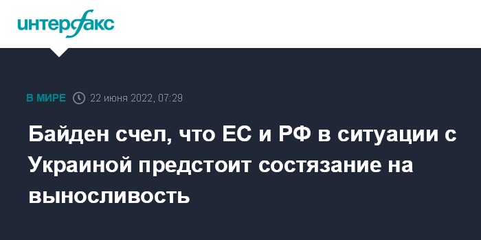 Москва. 22 июня. INTERFAX.RU - Ситуация на Украине может стать состязанием на выносливость между Европой и Россией на определенном этапе, предположил президент США Джо Байден.