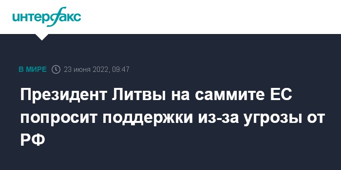 Москва. 23 июня. INTERFAX.RU - Президент Литвы Гитанас Науседа на саммите ЕС будет стремиться заручиться поддержкой лидеров Евросоюза для Литвы, которая в последние дни получила угрозы со стороны России в связи с ограничением транзита в Калининградскую область, заявила главный внешнеполитический советник президента страны Аста Скайсгирите.