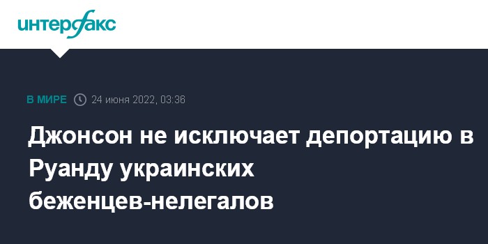 Москва. 24 июня. INTERFAX.RU - Украинцы, прибывающие в Великобританию нелегально, могут быть отправлены в Руанду, заявил премьер-министр Борис Джонсон. Об этом сообщает газета The Guardian.