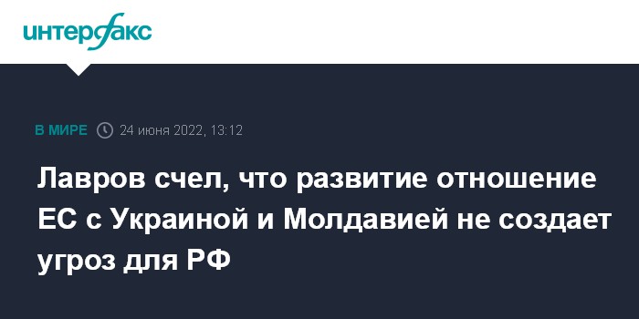 Москва. 24 июня. INTERFAX.RU - Развитие отношений Молдавии и Украины с Евросоюзом не создает для России рисков, заявил глава МИД РФ Сергей Лавров.