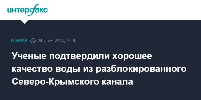 Ученые подтвердили хорошее качество воды из разблокированного Северо-Крымского канала