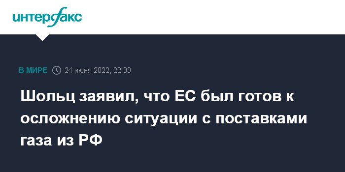 Москва. 24 июня. INTERFAX.RU - Канцлер ФРГ Олаф Шольц заявил, что ЕС заранее подготовился к сложной ситуации на рынке газа, в которой он оказался.