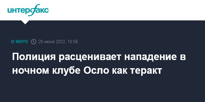 Москва. 25 июня. INTERFAX.RU - Органы правопорядка Норвегии, расследуя стрельбу в ночном клубе Осло, полагают, что речь идет о теракте, передает Associated Press со ссылкой на норвежскую полицию.