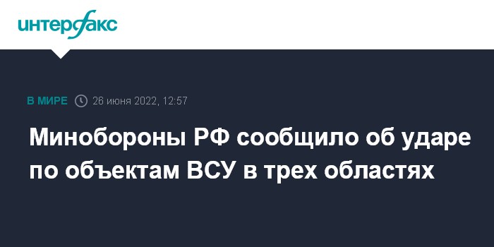 Минобороны РФ сообщило об ударе по объектам ВСУ в трех областях