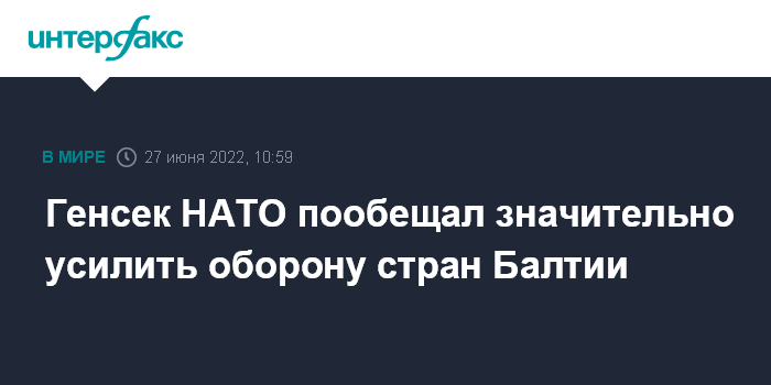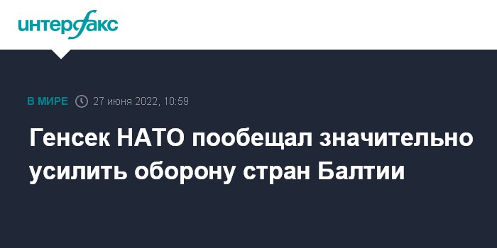Москва. 27 июня. INTERFAX.RU - Генеральный секретарь НАТО Йенс Столтенберг заявил, что новая Cтратегическая концепция альянса, которая будет рассмотрена на начинающемся во вторник в Мадриде саммите, должна значительно укрепить оборону стран Балтии.