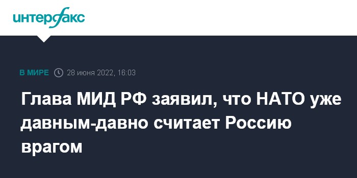 Глава МИД РФ заявил, что НАТО уже давным-давно считает Россию врагом