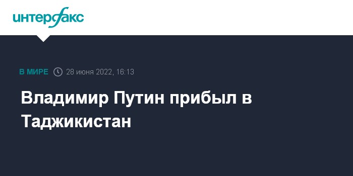 Москва. 28 июня. INTERFAX.RU - Президент РФ Владимир Путин прибыл в Таджикистан с рабочим визитом, где проведет переговоры с руководителем этой страны Эмомали Рахмоном.