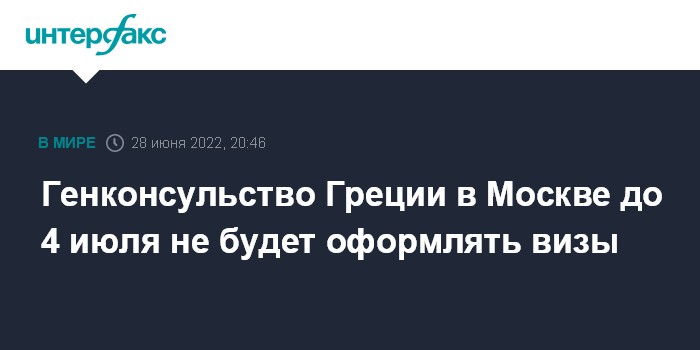 Генконсульство Греции в Москве до 4 июля не будет оформлять визы