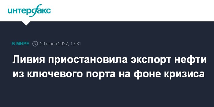 Москва. 29 июня. INTERFAX.RU - Национальная нефтяная корпорация Ливии (NOC) приостановила поставки из ключевого восточного порта Рас-Лануф на фоне обострения политического кризиса в стране, пишет агентство Bloomberg со ссылкой на источники, знакомые с ситуацией.