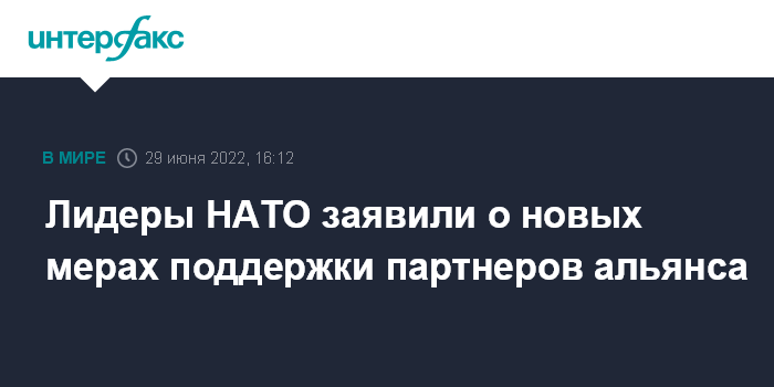 Москва. 29 июня. INTERFAX.RU - Лидеры стран НАТО на саммите в Мадриде заявили о новых, более мощных мерах поддержки партнеров, в том числе Боснии и Герцеговины, Грузии и Молдавии.