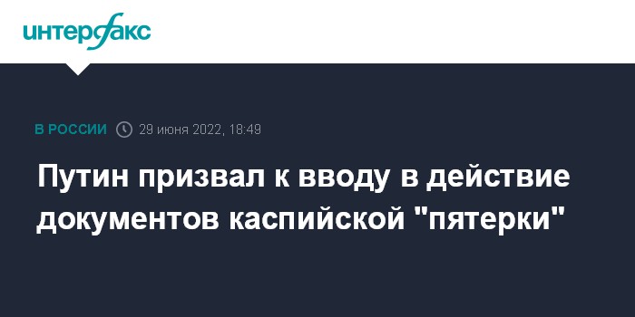 "Объем российской торговли с прикаспийскими странами постоянно растет. Так, в 2021 году товарооборот увеличился более чем на треть - 35%", - сказал президент РФ. Он отметил, что в январе-апреле нынешнего года этот показатель ещё больше увеличился.