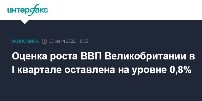 Москва. 30 июня. INTERFAX.RU - Экономика Великобритании в первом квартале 2022 года выросла на 0,8% по сравнению с предыдущими тремя месяцами, свидетельствуют окончательные данные Национального статистического управления (ONS).