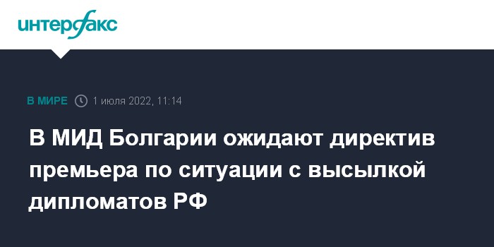 Москва. 1 июля. INTERFAX.RU - В болгарском внешнеполитическом ведомстве до полудня пятницы по местному времени (совпадает с московским) ждут директив от главы правительства Кирила Петкова по ситуации с объявлением 70 российских дипломатов персонами нон-грата, сообщает Болгарское национальное радио.