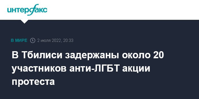 Москва. 2 июля. INTERFAX.RU - Полиция задержала в Тбилиси 17 участников акции, выступавших против проведения в грузинской столице мероприятий ЛГБТ-сообщества, сообщили журналистам в МВД Грузии.