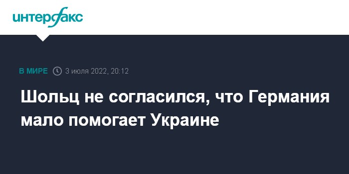 Москва. 3 июля. INTERFAX.RU - Германия по объективным причинам не может передавать военную помощь Украине так же интенсивно, как США, заявил канцлер ФРГ Олаф Шольц.