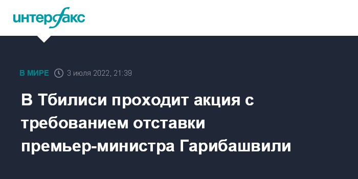 Москва. 3 июля. INTERFAX.RU - Многотысячная акция протеста под лозунгом "Домой в Европу" проходит в эти часы в Тбилиси у здания парламента, собравшиеся требуют отставки премьер-министра Ираклия Гарибашвили и создания правительства национального согласия.