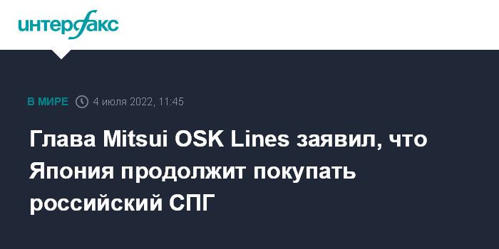Президент и главный исполнительный директор Mitsui OSK Lines Такеши Хасимото заявил, что у страны нет жизнеспособных альтернатив российскому СПГ, который она покупает относительно дешево в рамках долгосрочных контрактов.