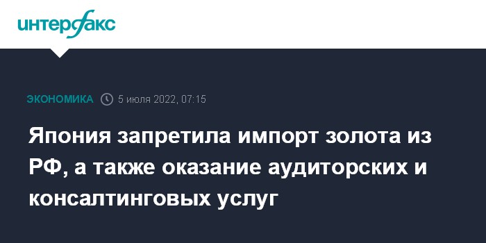 Япония запретила импорт золота из РФ, а также оказание аудиторских и консалтинговых услуг