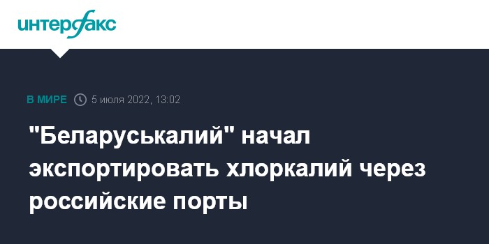 Москва. 5 июля. INTERFAX.RU - "Беларуськалий" начал отгружать калийные удобрения на экспорт через российские порты, сообщил белорусский гостелеканал ОНТ.