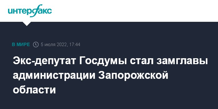 Москва. 5 июля. INTERFAX.RU - Глава временной администрации Запорожской области Евгений Балицкий назначил двух заместителей, один из постов занял экс-депутат Госдумы от Крыма Андрей Козенко, сообщил в Telegram член главного совета администрации региона Владимир Рогов.