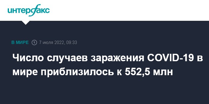 Число случаев заражения COVID-19 в мире приблизилось к 552,5 млн