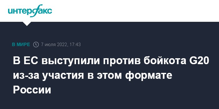 При этом его представитель заявила: "Участие России в G20 может поставить под сомнение значимость и доверие к G20. Европейский союз решительно настроен обеспечить успех министерской встречи на Бали, но мы не позволим Москве использовать этот форум как платформу для пропаганды".