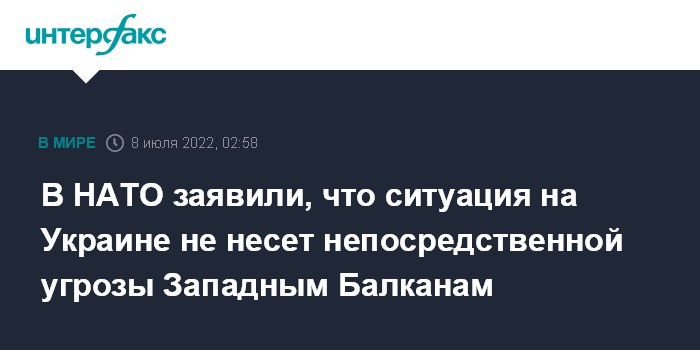 "Этот высокопоставленный представитель НАТО в четверг заявил, что Западные Балканы не сталкиваются с непосредственной угрозой в результате конфликта на Украине", - сообщает Associated Press (AP).