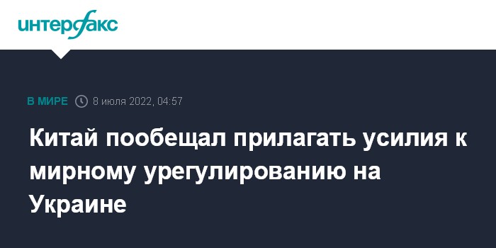 Китай пообещал прилагать усилия к мирному урегулированию на Украине