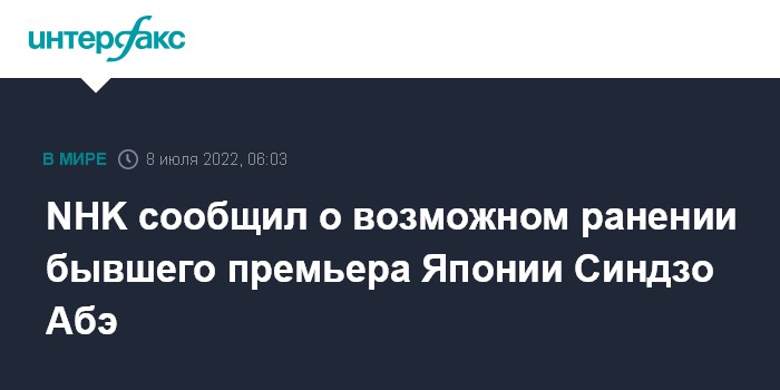 NHK сообщил о возможном ранении бывшего премьера Японии Синдзо Абэ