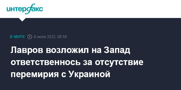 Москва. 8 июля. INTERFAX.RU - Желание Запада победы Украины над Россией "на поле боя" отодвигает возможность мирного процесса, заявил журналистам на Бали глава российского МИД Сергей Лавров.