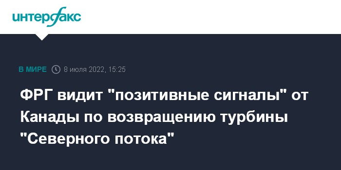 ФРГ видит "позитивные сигналы" от Канады по возвращению турбины "Северного потока"