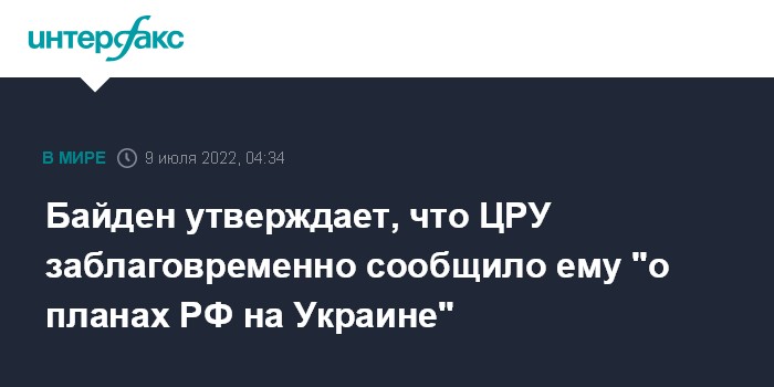 Москва. 9 июля. INTERFAX.RU - Президент США Джо Байден выступил с утверждением о том, что американские власти, благодаря "успешной работе разведывательных структур", еще до начала специальной военной операции на Украине знали "о планах России".