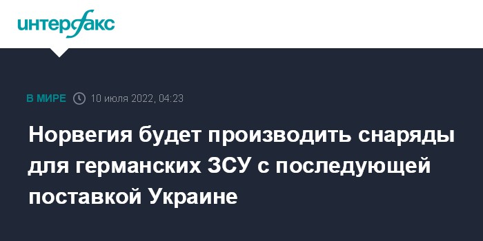 Норвегия будет производить снаряды для германских ЗСУ с последующей поставкой Украине